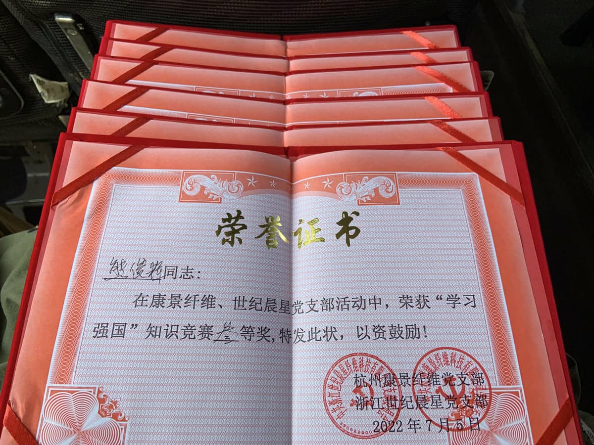 5 Temmuz'da, Zhejiang Century Morningstar Fiber Technology Co., Ltd. Parti Şubesi ve Hangzhou Kangjing Fiber Parti Şubesi, Güney Anhui Olayı'nın ürünü olan Shangrao Toplama Kampı'nın anma yerini ziyaret etmek için Jiangxi Eyaleti, Shangrao'ya gitti. . Yolda otobüste güçlü bir ülkenin bilgilerini öğrenmek için küçük çaplı ortak bir yarışma düzenlendi. Onursal sertifikaların ve ikramiyelerin verilmesi, teorik bilginin güçlendirilmesini ve parti üyelerinin kalitesinin artırılmasını amaçlamaktadır!